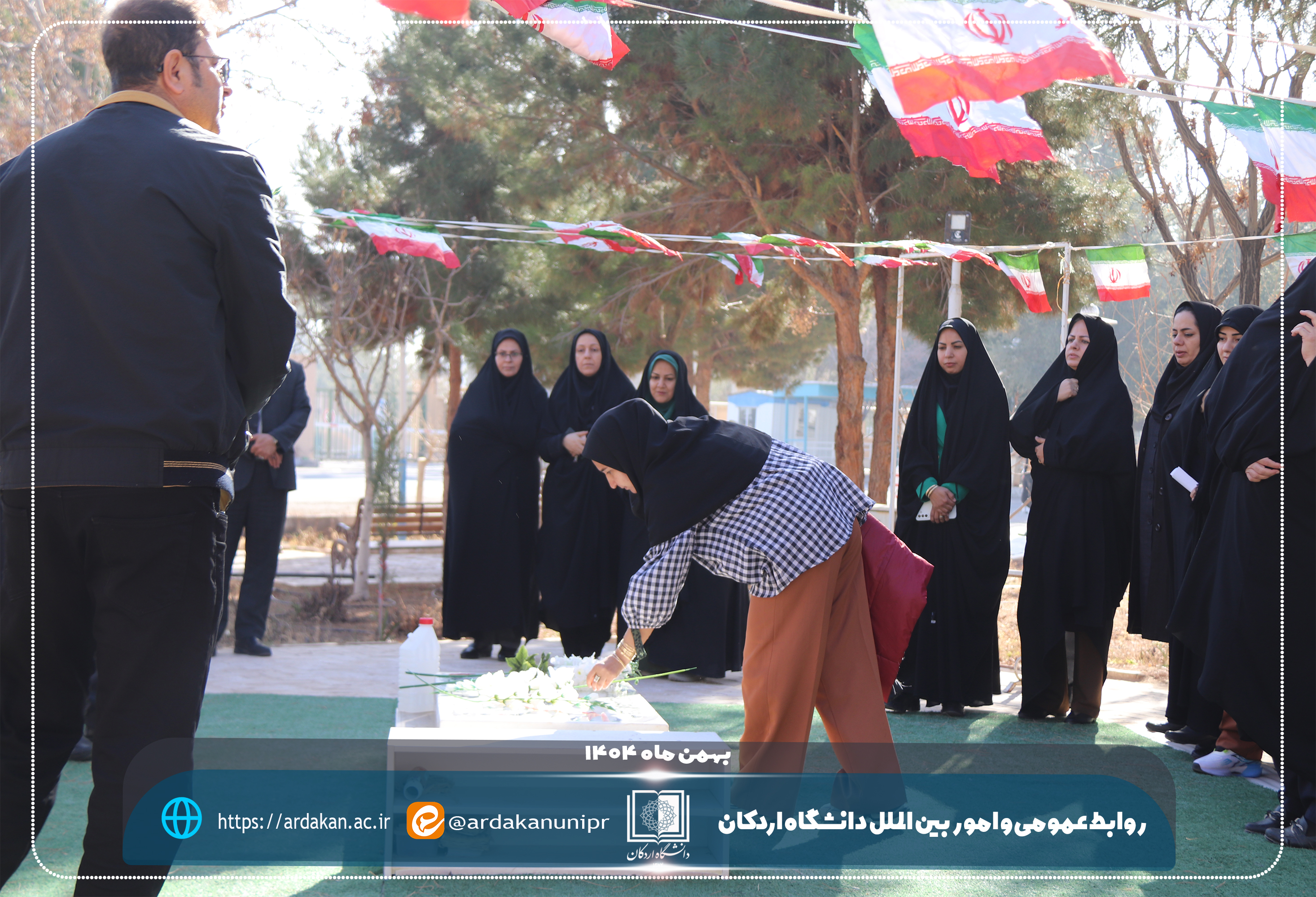 به گزارش روابط عمومی و امور بینالملل دانشگاه اردکان، در این مراسم ابتدا مرقد مطهر شهید گمنام دانشگاه با گلاب شستوشو داده شد و سپس با اهدای گل گلباران شد.